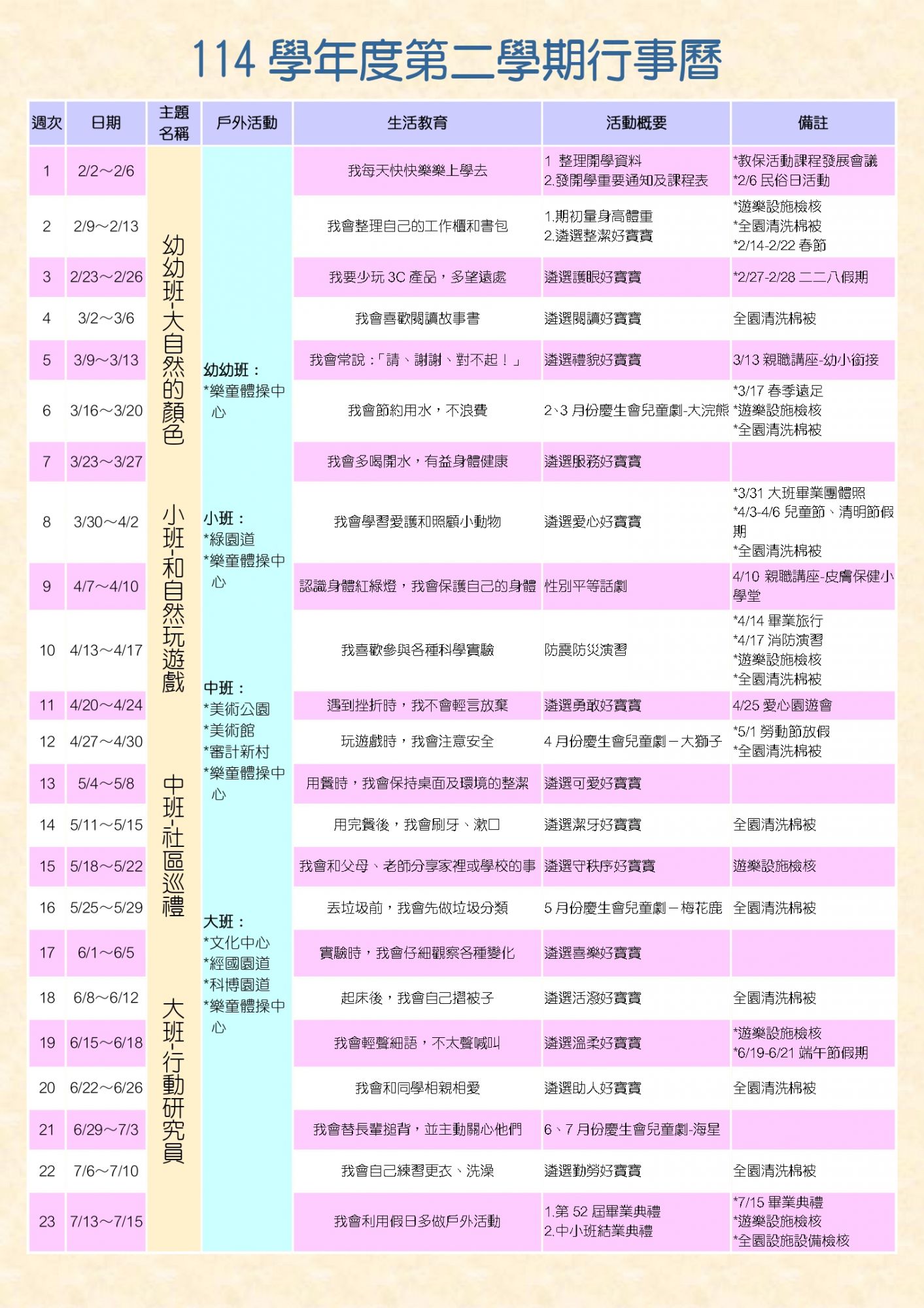 學期行事曆